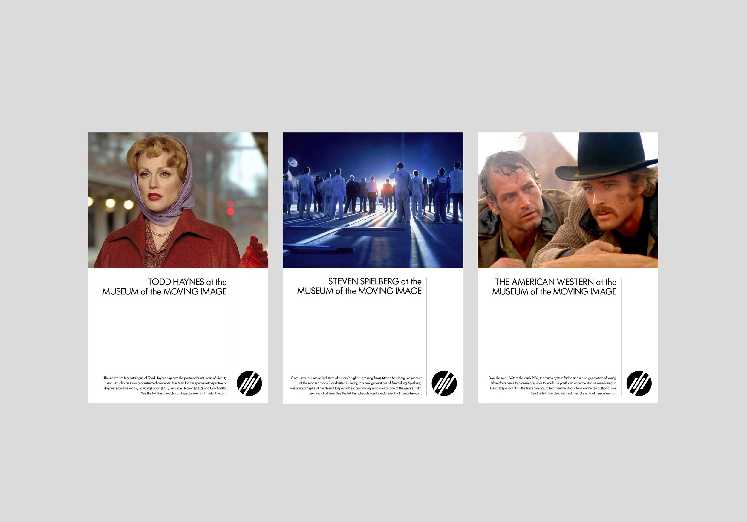 Celebrating the history and achievements of motion pictures, television, and interactive games, the Museum of the Moving Image needed a logo that was not tied to any specific platform or time period. The abstract mark we created conveys the concept of sequential movement without any literal reference to a physical device or technology (movie camera, tv screen, etc.) that could become obsolete in time.