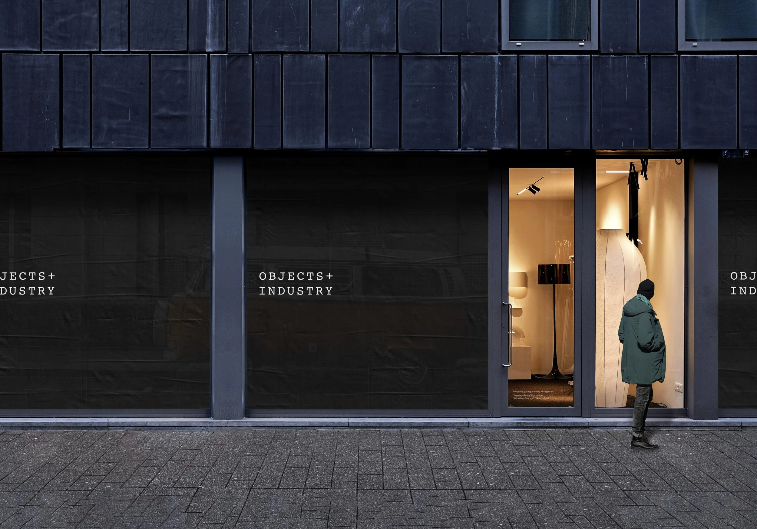 Project scope: Retail branding system including naming, logo, copywriting, color palette, typography system, and architectural signage
