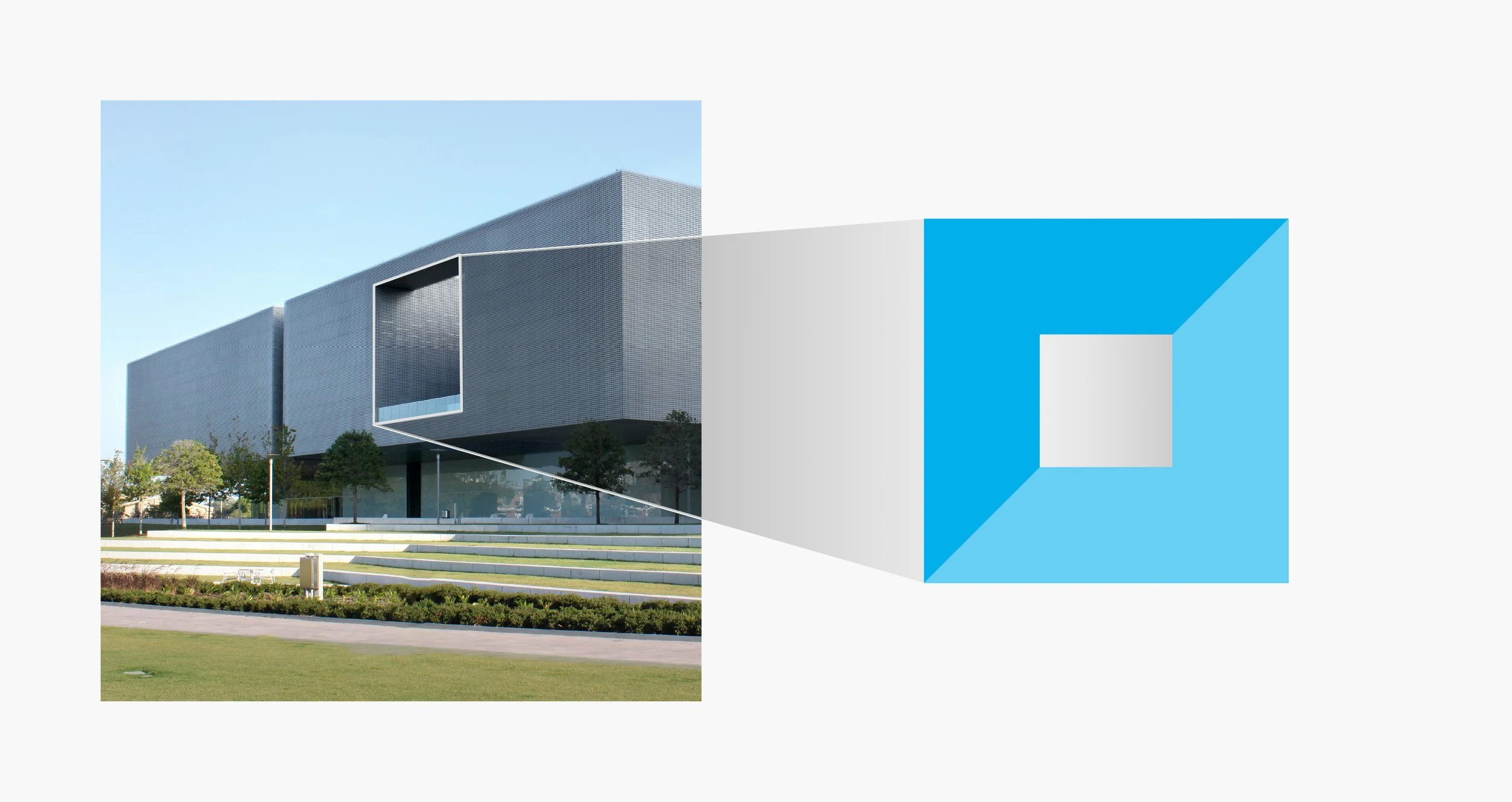 The foundation of this visual branding system is a frame-like symbol based on the museum’s architecture — specifically the building’s distinctive square void. The mark we designed can be thought of as a frame, a window, or a doorway, all leading to new experiences with art.